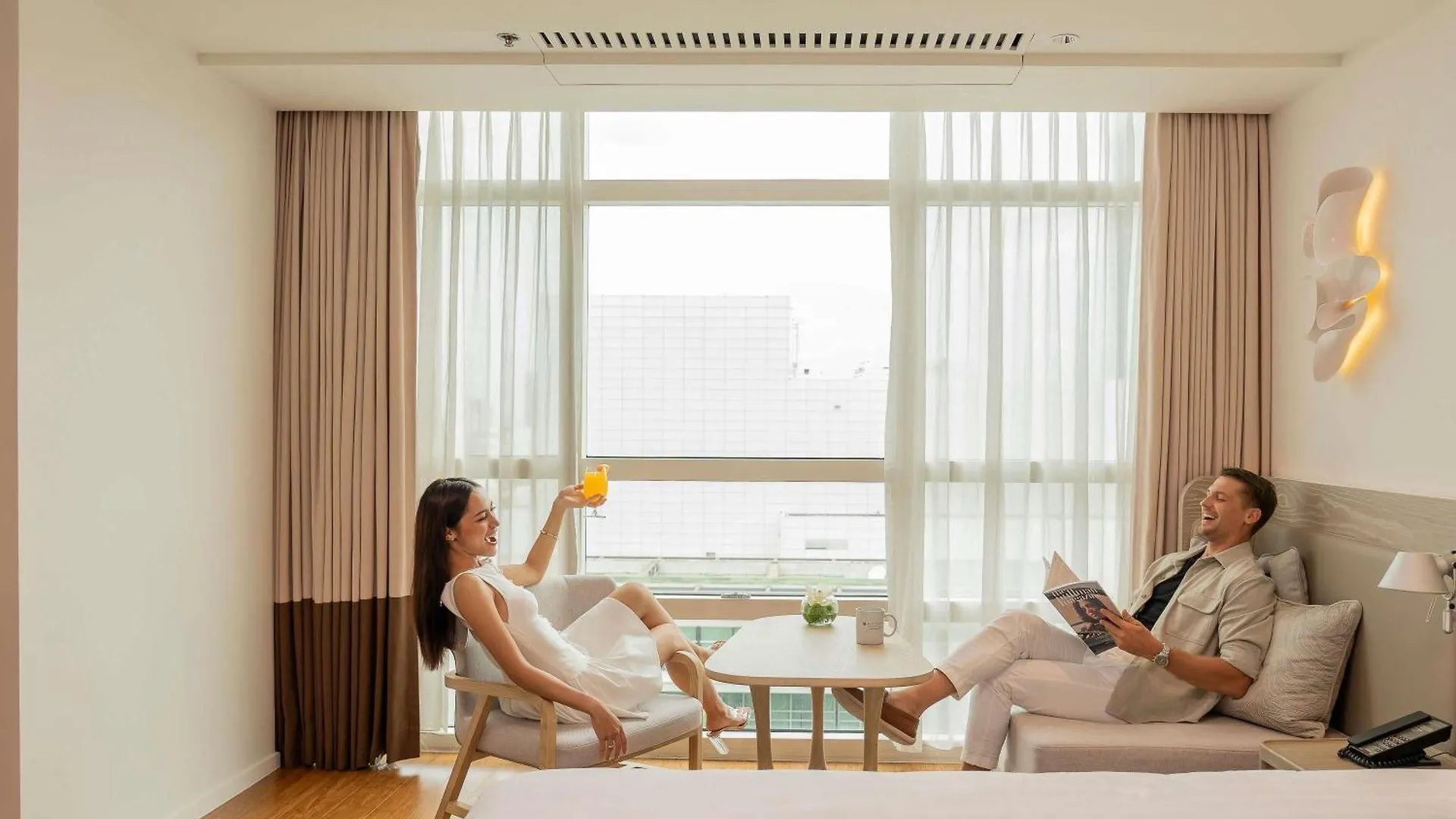 Alcune delle 434 camere dell'Hotel Pullman Bangkok King Power, climatizzate, si affacciano sulle montagne e dispongono di un balcone e una cucina. Gli ospiti possono usufruire di un bollitore elettrico e una TV a schermo piatto con canali satellitari e il Wi-Fi.
